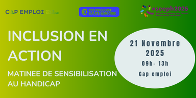 Dans le cadre de la Semaine Européenne de l'Emploi des Personnes Handicapées 2025, les équipes de Cap emploi Haute-Garonne, en partenariat avec la Chambre de Commerce et d'Industrie de la Haute-Garonne, organisent le 21 novembre 2025 une matinale inédite, dédiée aux employeurs. Cette matinée de sensibilisation du handicap…